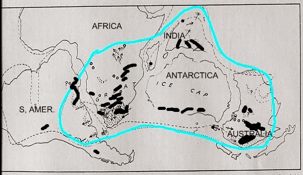 Fossils indicate the presence of the Jurassic period, i.e. dinosaurs on Gondwana. This is consistent with this supercontinent lasting until Noah’s flood.